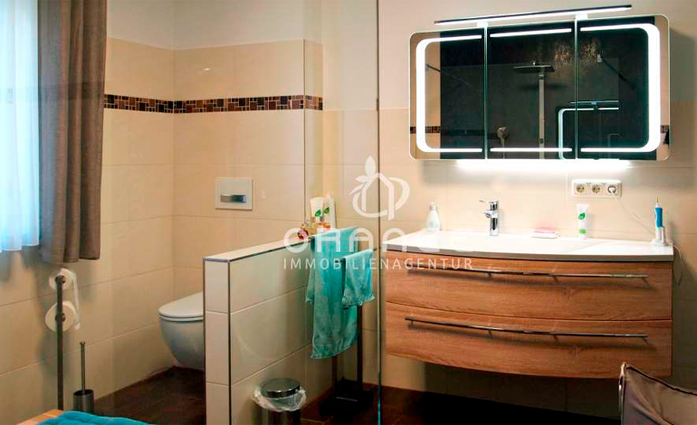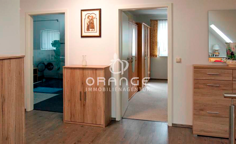 Die Siedlung entstand in den 30er Jahren. 2016 wurde das Haus komplett zurückgebaut und auf neuem Fundament als Mehrgenerationenhaus konzipiert nach euestem Standard aufgebaut. Im Eingangsbereich befindet sich eine geräumige Diele mit Zugang zu Wohn- und Schlafzimmer, Küche, Bad, Haustechnikraum sowie einer großzügigen Treppe ins Obergeschoss. Auf beiden Etagen gibt es barrierefreie Duschbäder und exklusive Einbauküchen mit hochwertigen echnischen Geräten. In der oberen Etage sind außerdem drei Zimmer und eine Abstellkammer. Der Dachboden wird aktuell als Lagerraum verwendet. Durch die große Galerie wäre auch der Einbau einer weiteren Treppe denkbar, wenn man das Dachgeschoss ausbauen und damit den Wohnraum erweitern möchte.